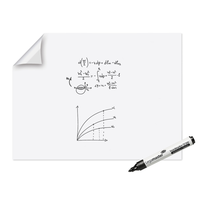Rolka bielej fólie v lesklej úprave s 15 listami šírky 90 cm s perforáciou po 120 cm. Plne recyklovateľná. Použiteľná všade tam, kde nie je dostupná tabuľa. Popisovateľná popisovačmi Legamaster na biele tabule a po použití zmazateľná. Používanie permanentných popisovačov edding zaručuje intenzívnejšiu farbu (dlhšia doba schnutia). Šetrná k životnému prostrediu - jeden list môže byť využitý až 10-krát. Elektrostatický náboj umožní priľnutie filmu na rôzne povrchy - sklo, stenu, drevo a tapetu bez použitia lepidla. Fóliu jednoducho odmotáte, v perforovanom mieste odtrhnete a ľahka pritlačíte na daný povrch. Nevyžaduje žiadne lepidlo, nezanecháva žiadne stopy. Povrch fólie umožní tiež udržanie papierových poznámok bez ich nalepenia. Väčšie balenie 4 rolky. Rozmery š × v : 90 × 120 cm.
