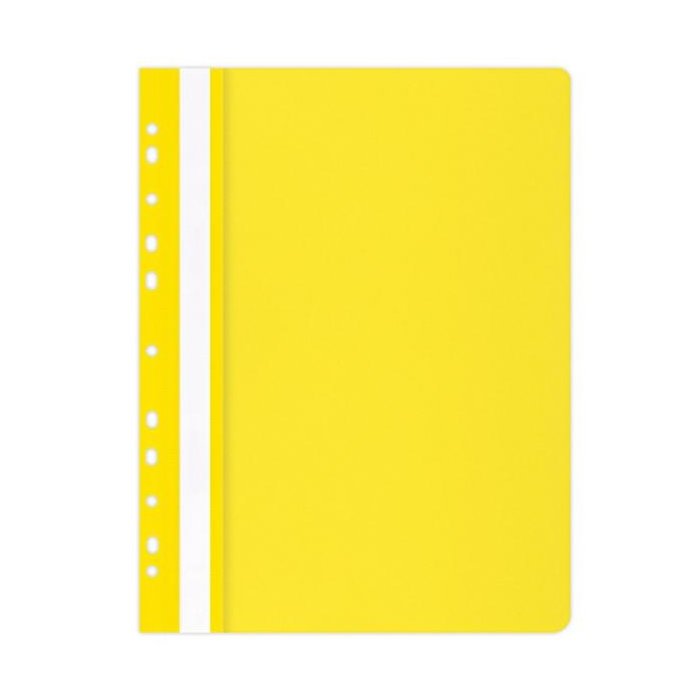 Rýchloviazač PP formátu A4 s priehľadnou prednou stranou a eurodierovaním. Farba matná žltá.