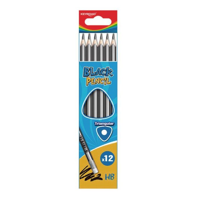 Drevená ceruzka HB s gumou, trojuholníková. Balenie: v kartónovom balení, 12 ks. Farba: sivá.