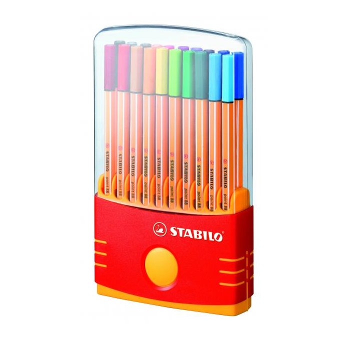 Veľmi obľúbený jednorazový liner na atramentovej báze. Vhodný na písanie a rysovanie podľa šablóny alebo pravítka. Kovové puzdro hrotu zaisťuje dlhú životnosť. Šírka stopy 0,4 mm. Dodávaný v sade 20 farieb.