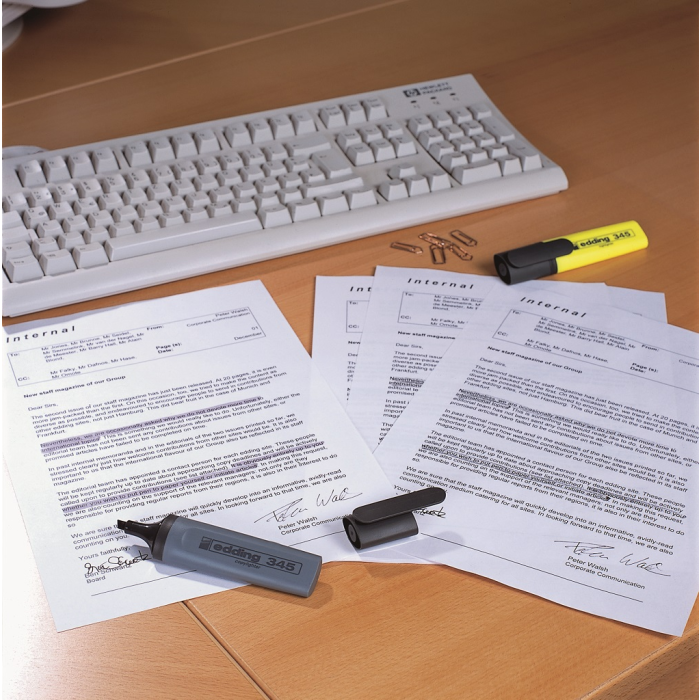 Popisovač so zrezaným hrotom so šírkou stopy 2 - 5 mm. Pre zvýraznenie textových pasáží, výstupov z atramentových tlačiarní, poznámok a pod. Vodovzdorný pigmentový atrament so silne svietivými a intenzívnymi farbami. Vhodný pre InkJet - pri zvýrazňovaní textov tlačených na atramentových tlačiarňach sa atrament nerozpíja. Dopĺňateľný atramentom HTK 25. Sada 4 farieb.