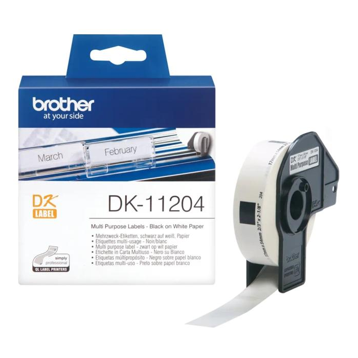 Etikety do elektronických tlačiarní QL-700, QL-810 W a QL-1110 NWB sú navinuté v rolkách v rôznych formátoch alebo bez formátovania. Materiál termopapier.