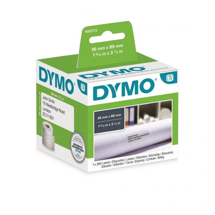 Etikety do tlačiarní Dymo LabelWriter. Kompatibilné s modelmi LabelWriter 400, 450, 550, 4XL, 5XL. Sú navinuté v rolkách v rôznych formátoch. Materiál papier. Farba biela.