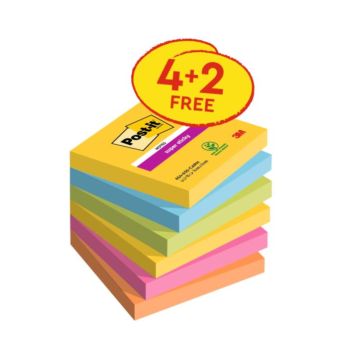 Samolepiaci bloček Post-it Carnival 76x76, 4 + 2 Zadarmo, 90 lístkov v bločku