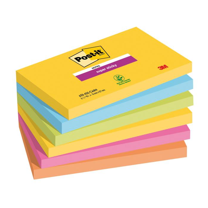 Samolepiaci bloček Post-it Super Sticky CARNIVAL, veľkosť 76 x127 mm 6 bločkov po 90 lístkov