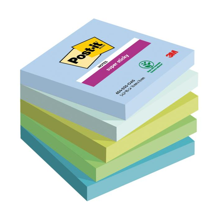 Samolepiaci bloček Post-it Super Sticky OASIS, veľkosť 76x76 mm, 5 bločkov po 90 lístkov