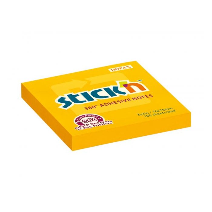 Samolepiaci bloček Stick’n Hopax , 360°, 76x76 mm, oranžový