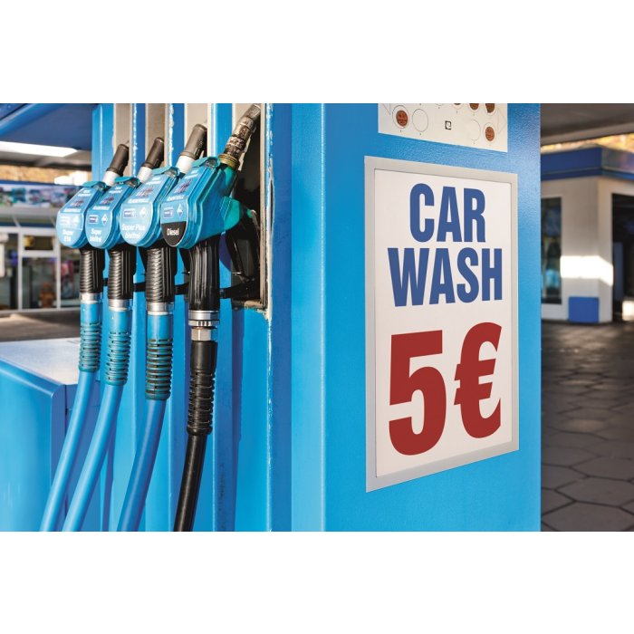 Samolepiaci informačný panel s prednou magnetickou časťou. Ideálny na vystavovanie plagátov, kľúčových informácií, špeciálnych oznamov alebo dôležitých čísel. Informácie sa ľahko vymieňajú a sú čitateľné z oboch strán, ak sa panel umiestni napr. na okno alebo priehľadné dvere. Vhodný na hladké a pevné povrchy. V prípade potreby je ľahko premiestniteľný bez potreby vŕtania. Formát A3, rámik strieborný.