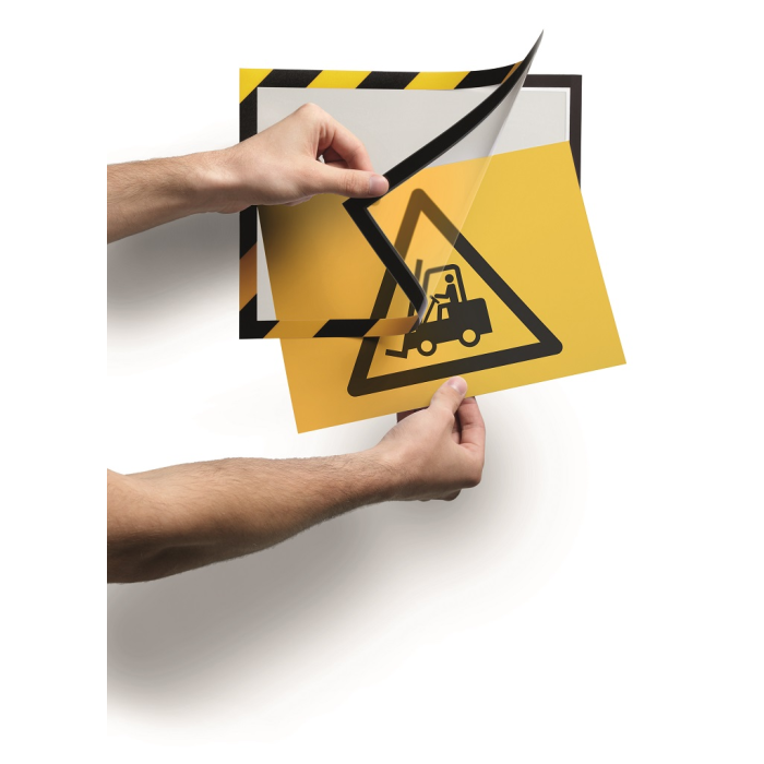 Bezpečnostný samolepiaci informačný panel s prednou magnetickou časťou. Ideálny na vystavovanie veľmi dôležitých informácií. Informácie sú čitateľné z oboch strán. Vhodný na hladké a pevné povrchy. Formát A4. Farba žlto-čierna.