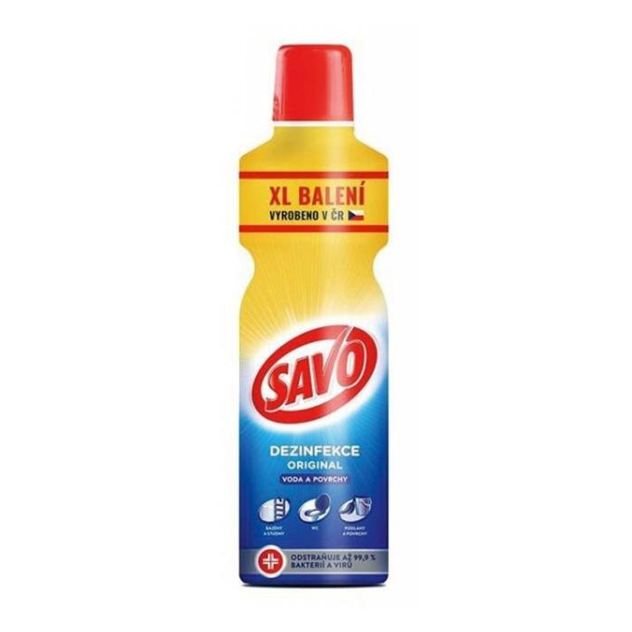 Tekutý dezinfekčný prípravok na dezinfekciu vody a povrchov. Spoľahlivo likviduje baktérie, vírusy, riasy a huby. SAVO Original likviduje choroboplodné zárodky, baktérie a vírusy (vrátane HIV a HBV), riasy a nižšie huby, odstraňuje pachy. Vyniká mimoriadne vysokou čistotou, dlhou záručou lehotou a unikátnou ekologickou hodnotou, pre ktorú je schválený aj pre dezinfekciu vody v bazénoch a ako jediný aj pre pitnú vodu v studniach. Dezinfekcia povrchov:na podlahy, kuchyne, sanitárne predmety a sanitárnu keramiku použite roztok 2 l prípravku Savo original a 9 l vody, nechajte pôsobiť 30 minút. Silné znečistenie najprv mechanicky odstráňte. Hračky, predmety a plochy, ktoré prichádzajú do styku s potravinami, opláchnite po 30 minútach pitnou vodou.