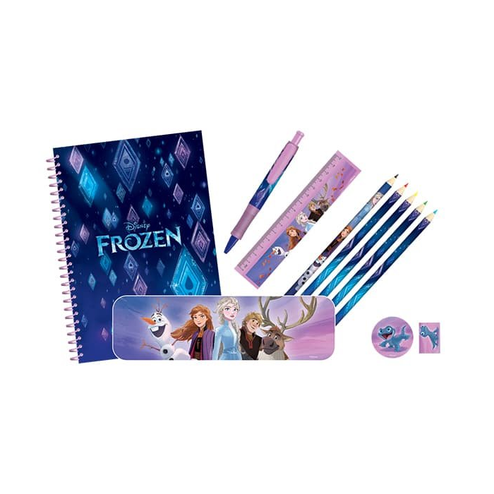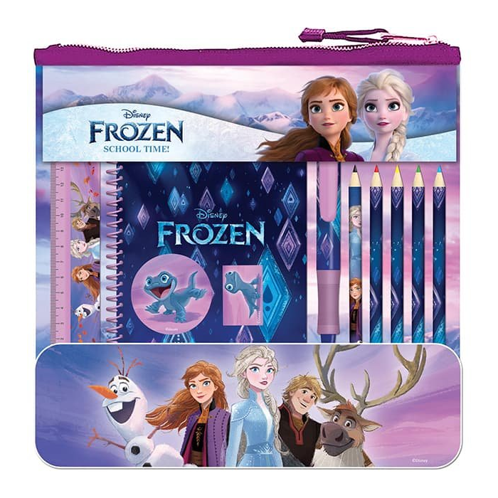 • Set obsahuje základné potreby malého (pred)školáka: peračník, pravítko, ceruzku, 4 pastelky, gumu, strúhadlo, pero a poznámkový blok.