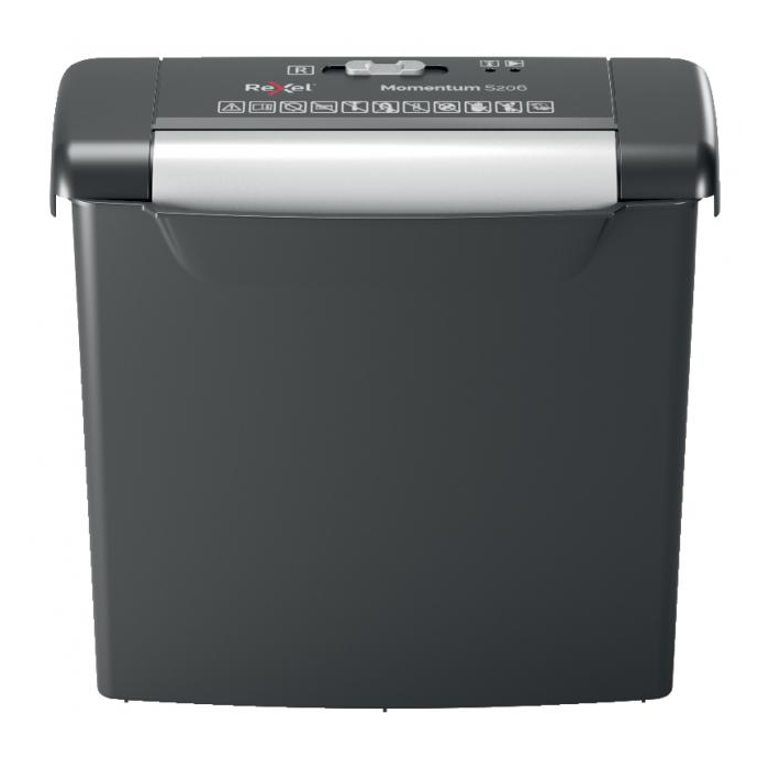 Nezastaviteľná skartovačka! Rexel Momentum S206 skartuje až 6 hárkov naraz a vydrží v nepretržitom chode 2 minúty, vhodná na použitie doma. Prúžkový rez na úrovni zabezpečenia P2 reže papier na prúžky so šírkou 6 mm. Odpadový kôš s kapacitou 9 l pojme 75 hárkov A4.