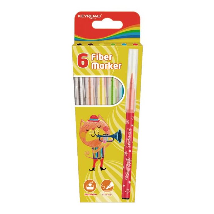 Školské fixky KEYROAD Fiber Marker, 6 ks, mix farieb