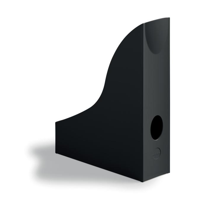Praktický stojan na časopisy a katalógy z recyklovaného plastu v kvalite Blue Angel, pre formáty A4. S otvorom na prst pre ľahké vyberanie z police. Rozmery: 73 x 306 x 241 mm (Š x V x H). Farba čierna.