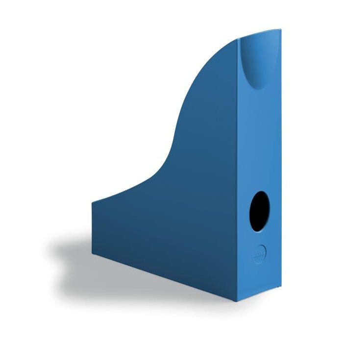 Praktický stojan na časopisy a katalógy z recyklovaného plastu v kvalite Blue Angel, pre formáty A4. S otvorom na prst pre ľahké vyberanie z police. Rozmery: 73 x 306 x 241 mm (Š x V x H). Farba modrá.