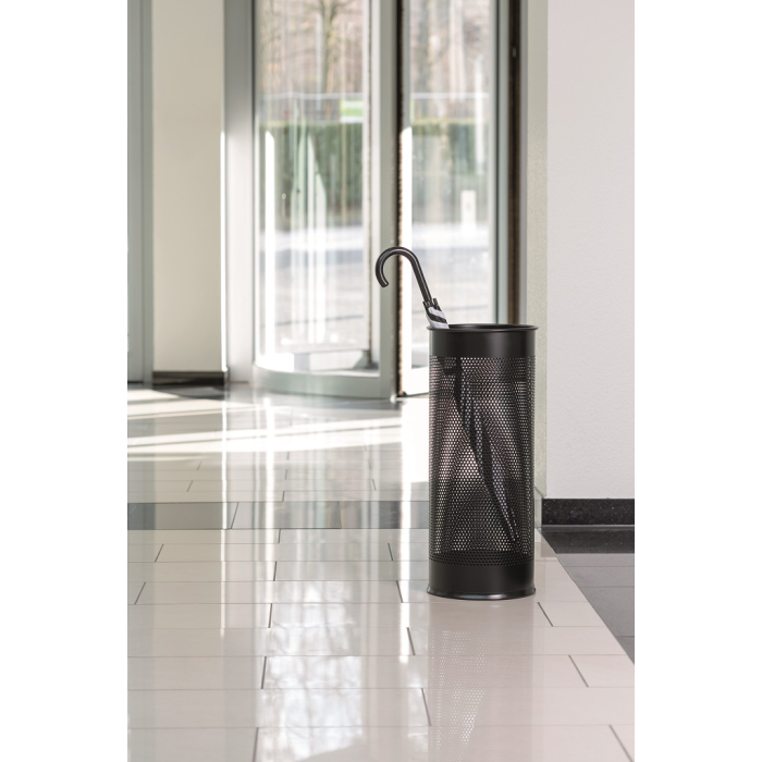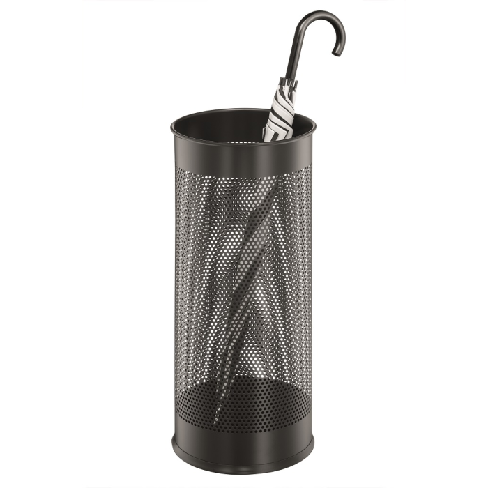Štýlový stojan na dáždniky vysokej kvality s dekoratívnou perforáciou vyrobený z ocele. Ideálny do vstupných priestorov, domácností a kancelárií. Objem 28,5 l, výška 620 mm, priemer 260 mm.