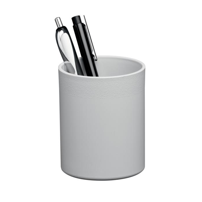 Praktický, odolný stojan na perá. Vyrobený z recyklovaných plastov v kvalite Blue Angel. Vhodný na perá, nožnice, zvýrazňovače atď. Rozmery: Ø 80 mm, výška 100 mm. Farba sivá.