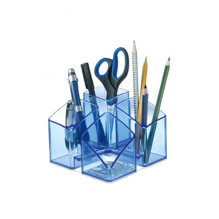 Stojan so 4 sekciami na písacie potreby a ďalšie kancelárske drobnosti. Spodná strana s protišmykovou úpravou. Materiál kvalitný plast vysokého lesku. Pri spojení 2 alebo 4 stojanov dosiahnete zaujímový moderný efekt. Rozmery 125 × 125 × 100 mm. Stojan dodávaný prázdny.