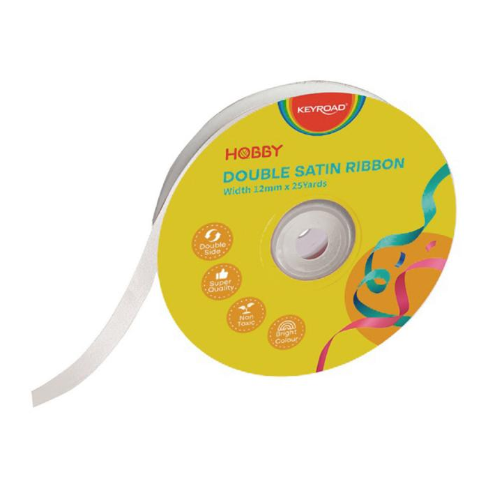 Stuha KEYROAD dvojitá saténová, 12 mm x 22,86 m, na cievke, biela