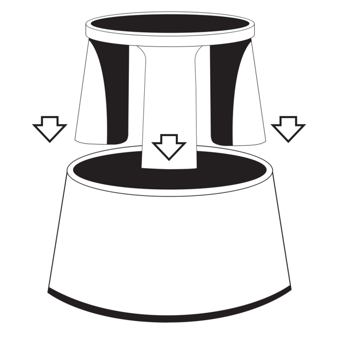 Bezpečný spôsob ako sa dostať na nedostupné miesta. Stupienok vyrobený z kovu, resp. plastu, miesta na stúpanie potiahnuté protišmykovou gumou. Tri vsadené kolieska umožňujú úplnú pojazdnosť. Pri používaní sa kolieska z dôvodu bezpečnosti zatiahnu. Výška 43 cm, vrchný priemer 41,5 cm, spodný priemer 44,5 cm. Nosnosť 150 kg. Farba čierna.