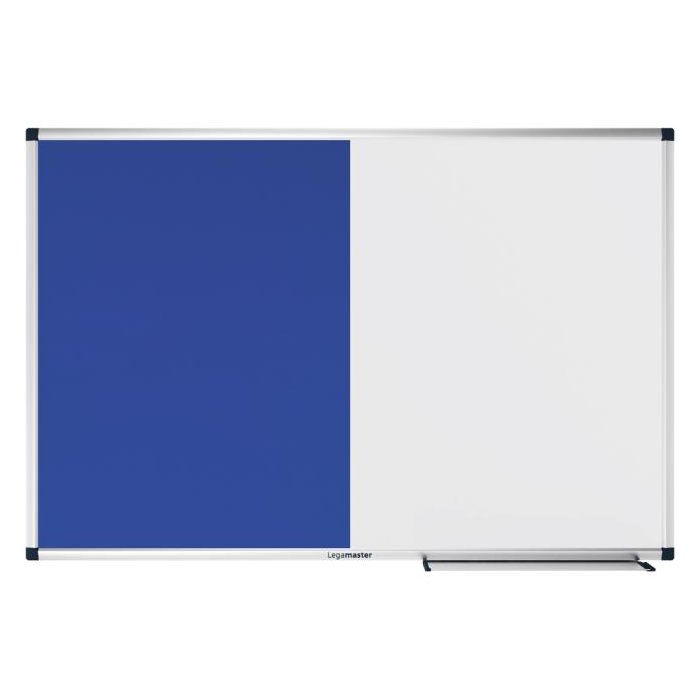 Priestorovo úsporná dvojfunkčná doska na písanie a pripínanie. Hladké písanie a výkon suchého vymazávania. Jednoduché pripevnenie poznámok, náčrtov a fotografií pomocou magnetov a špendlíkov. Jednoduchá skrytá montáž na stenu. 5 ročná záruka na dokonalú popisovateľnosť a stierateľnosť povrchu dosky pri použití v kombinácii s príslušenstvom Legamaster. Tento produkt je vyrobený z materiálu z dobre obhospodarovaných lesov s certifikátom FSC® a iných kontrolovaných zdrojov (FSC C158462). Funkčná tabuľa a nástenná tabuľa na príležitostné použitie v kancelárii alebo domácej kancelárii. Jedna polovica: Magnetická lakovaná oceľová tabuľa vhodná na popisovanie za sucha stierateľnými popisovačmi na tabuľu. Druhá polovica: Nástenka s plsteným povrchom. Hliníkový rám so sivými plastovými rohovými krytmi (Pantone 433C). Možno namontovať horizontálne alebo vertikálne. Zásobník na popisovace (30 cm) s koncovými krytmi, montážna sada a montážny návod sú súčasťou balenia.