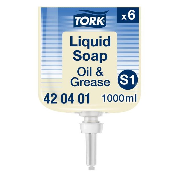 Tork priemyselné tekuté mydlo obsahuje zložku na rozpúšťanie mastnoty, ktorá je vysoko účinná, no šetrná k pokožke. Mydlo je bez pridaných vôní a farbív, čo znižuje alergické reakcie. Vhodný pre Tork zásobník na tekuté mydlo a mydlo v spreji, ktorý je overený ako ľahko používateľný a všetkým používateľom poskytuje správnu hygienu rúk.