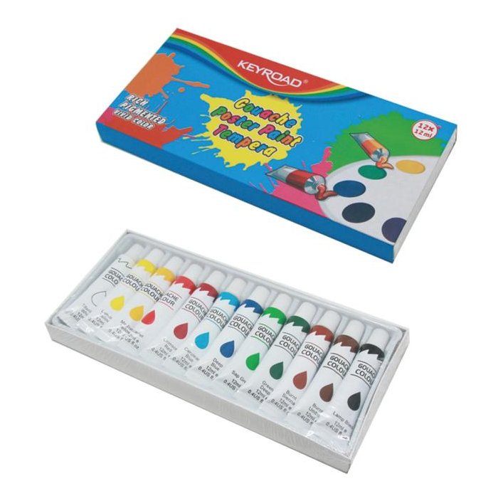 Temperové farby KEYROAD, 12 x 12ml, mix farieb