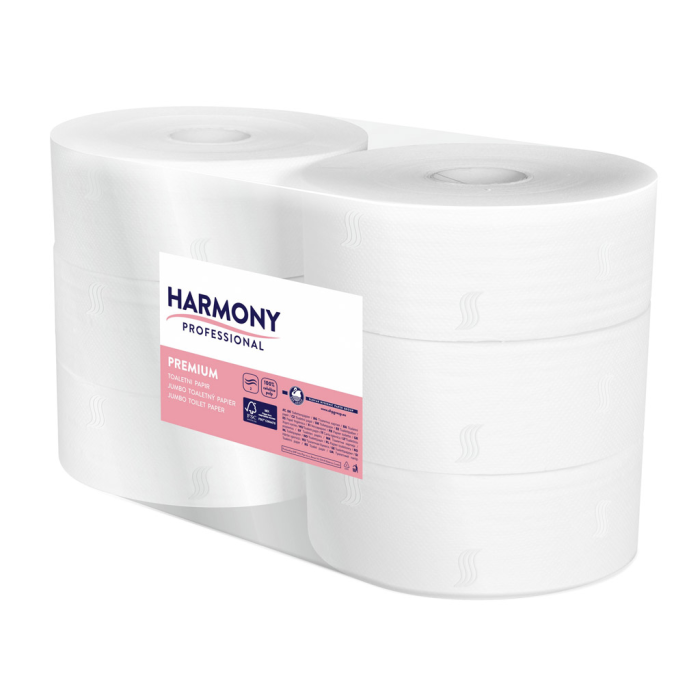 Toaletný papier HARMONY Professional Maxi Jumbo Roll celulóza. 100% celulóza, 80% belosť, návin 236 m. Väčšie balenie 6 ks.