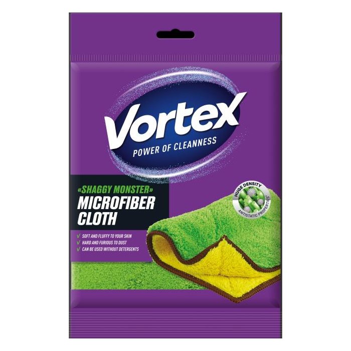 Vortex` utierka z mikrovlákna Shaggy Monster, vhodná na suché aj mokré čistenie, elektrostatický účinok v suchej forme - priťahuje najmenšie čiastočky prachu. Extrémne tenké mikrovlákna sa dostanú do najmenších mikropórov, veľkosť 20 x 30 cm, 1 ks.