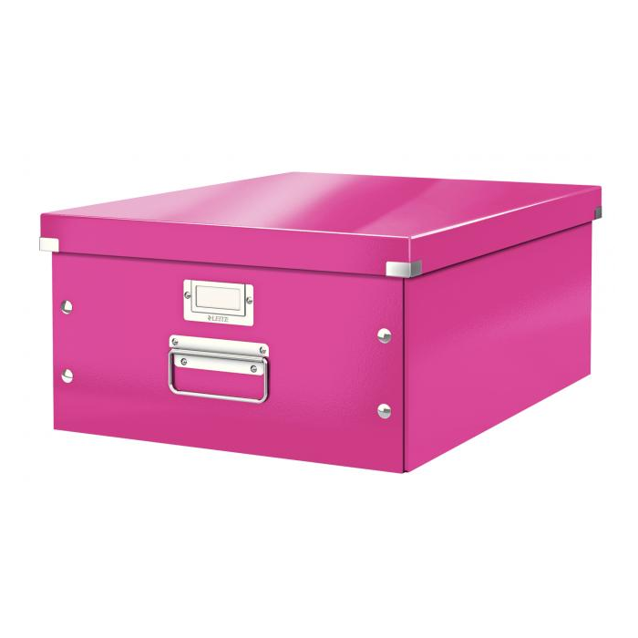 Skladacia archivačná krabica vhodná na ukladanie dokumentov formátu A3, fólií, obalov, obálok, zakladačov, katalógov a pod. Rámik na popisovací štítok, laminovaný povrch pre lepšiu a trvalejšiu ochranu, kovové rohy a robustné kovové úchyty pre ľahký prenos. Moderný design, ktorý vyzerá skvelo doma i v kancelárii. Jednoduché zloženie a vysoká stabilita vďaka pevnej konštrukcii. Rozmery (š × v × h) 369 × 200 × 482 mm. Farba ružová.
