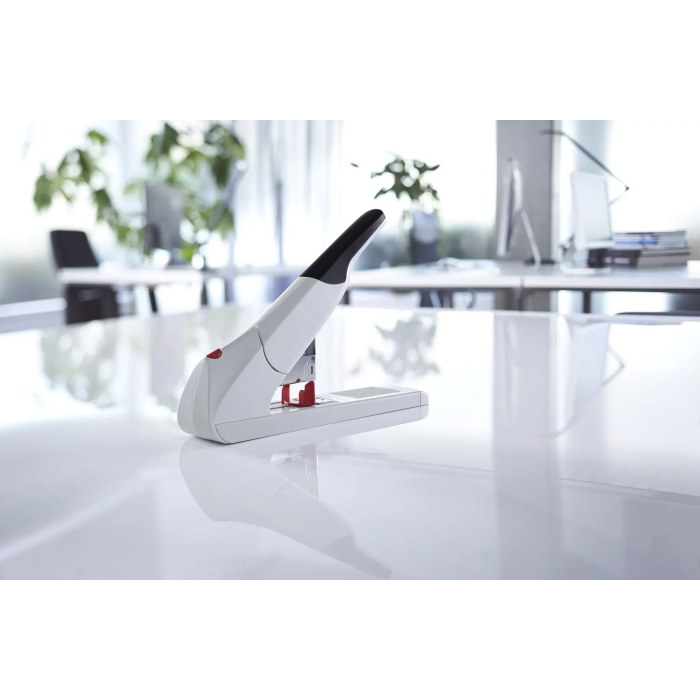 Extrémne silná celokovová veľkokapacitná zošívačka s plastovým telom. Kapacita zošívania do 210 listov, vybavená anti blokovacím ABS systémom pre bezproblémové zošívanie. Kovový zásobník s dvojitým vedením spiniek. Systém „bypass“ umožní použitie iba jednej veľkosti spiniek tým, že spinku ohne do bokov. Kapacita náplne 100 spiniek 23/ 8 až 23/ 24 SUPER. Variabilná hĺbka zošívania do 7,5 cm. Hmotnosť cca 2 100 g. Záruka 25 rokov. Farba sivá.