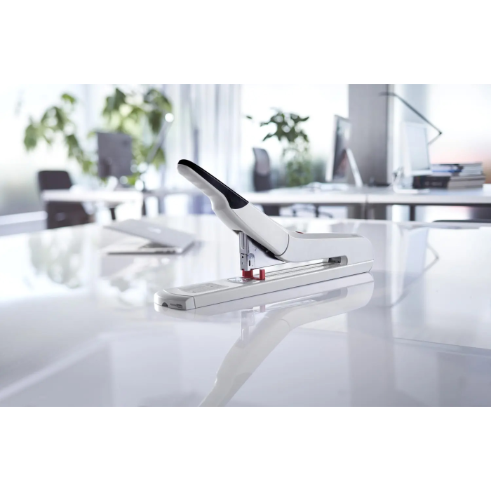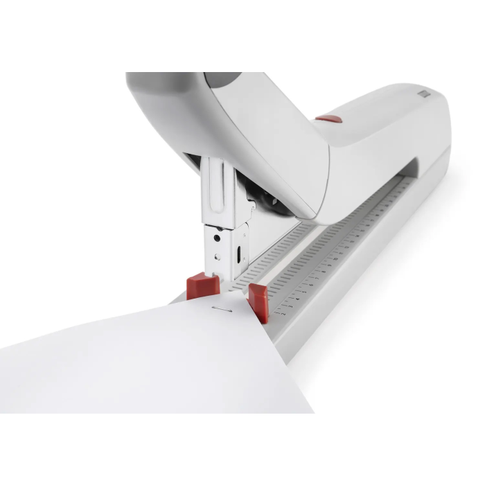 Silná veľkokapacitná zošívačka s kapacitou do 170 listov 80 g papiera. Kovový zásobník s dvojitým vedením spiniek. Kapacita náplne 100 spiniek 23/8 až 23/20SUPER. Hĺbka zošívania 25 cm. Hmotnosť cca 2400 g. Záruka 25 rokov.