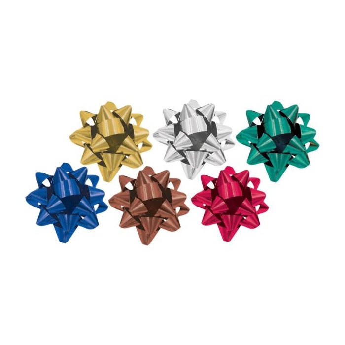 Mašľa v mixe matných metalických farieb. Ideálne pre moderné ozdobenie darčeka. Rozetka má na spodnej strane lepiacu pásku pomocou ktorej ju pripevníte na krabičku.