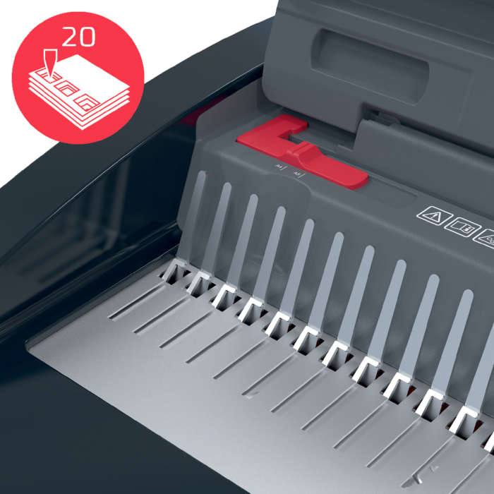 • spoľahlivý a kompaktný ručný viazač s plastovými chrbtami, navrhnutý na zdieľané použitie v kancelárskom a školskom prostredí s bežnými nárokmi na objem väzby