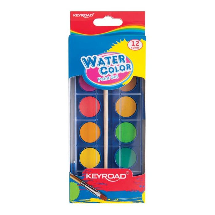 Vodové farby akvarelové so štetcom KEYROAD, 12 farieb