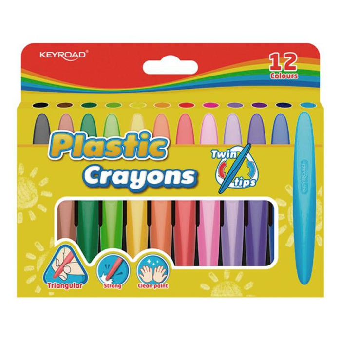 Voskové pastelky KEYROAD Twin Tips trojhranné, mix 12 farieb