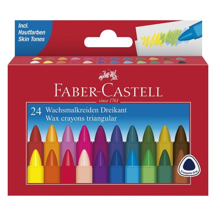 Voskovky s ergonomickým trojuholníkovým tvarom. Jasné farby vďaka väčšiemu množstvu pigmentu. Vhodné pre škôlky aj školy. Vode-odolné. S papierovým obalom pre čisté prsty. 24 žiarivých farieb v balení.