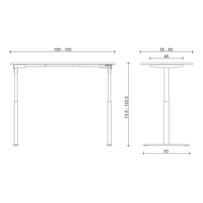 • výškovo nastaviteľný stôl s elektrickým 1-motorovým pohonom a 2-segmentovým zdvíhacím mechanizmom
