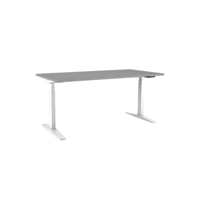 Výškovo nastaviteľný stôl BASIC, 2-motorový, 138x80 cm, podnož biela + doska sivá