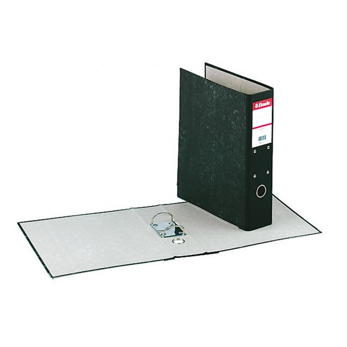 Zakladač s papierovým poťahom čierneho mramorového vzoru s mechanizmom na umiestnenie závesných máp. Vybavený chrbtovým krúžkom a natlačenou etiketou. Formát A4, šírka chrbta 7,5 cm. Väčšie balenie 25 ks.