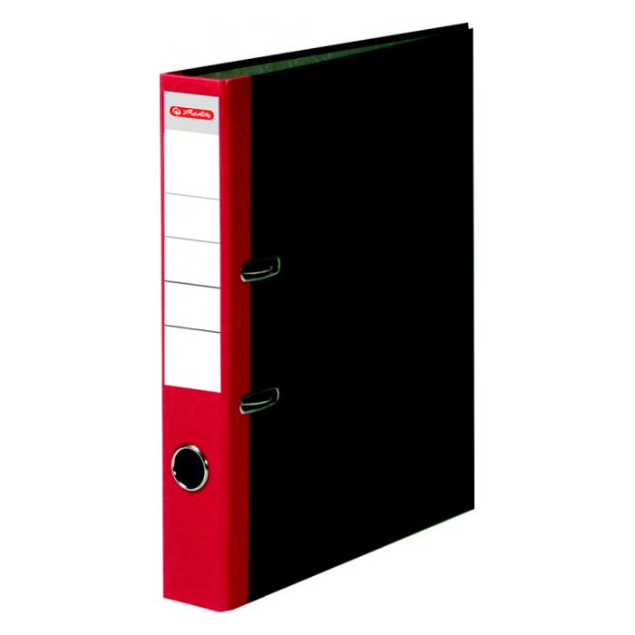 Pákový zakladač mramorový, formát A4. Šírka chrbta 5cm. Bočná strana červená so štítkom. Otvor na zadnej strane a radokrúžok pre lepšiu manipuláciu, kovová lišta. Farba červená.