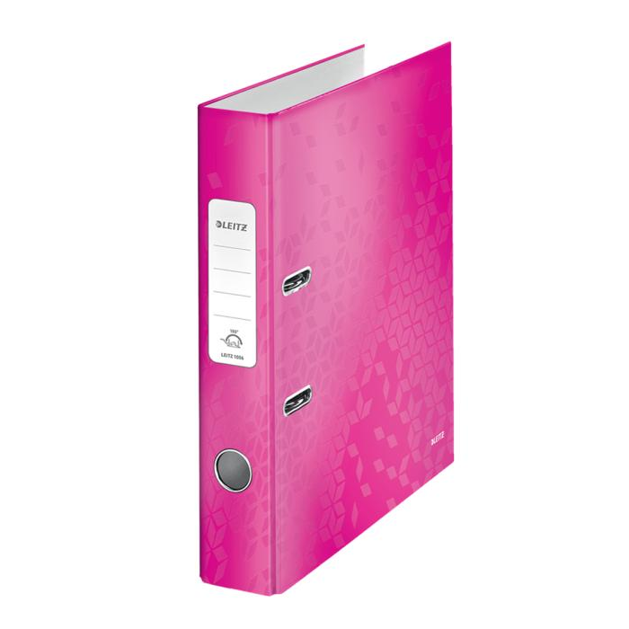 Pákový zakladač rady WOW v žiarivej metalickej ružovej farbe s dvojfarebným efektom. Unikátna patentovaná mechanika Leitz 180° poskytuje širšie otvorenie, možnosť zakladania väčšieho množstva papierov a o 20 % rýchlejšiu prácu so zakladačom. Vybavený chrbtovým krúžkom, rado zámkom a samolepiacim chrbtovým štítkom, ktorý môže byť v prípade potreby odstránený. Šírka chrbta 5 cm, kapacita 350 listov. Väčšie balenie 10 ks.