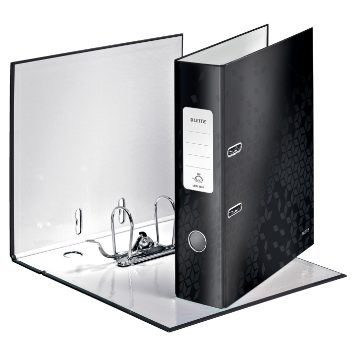Pákový zakladač rady WOW v žiarivej čiernej farbe s dvojfarebným efektom. Unikátna patentovaná mechanika Leitz 180° poskytuje širšie otvorenie, možnosť zakladania väčšieho množstva papierov a o 20 % rýchlejšiu prácu so zakladačom. Vybavený chrbtovým krúžkom, rado zámkom a samolepiacim chrbtovým štítkom, ktorý môže byť v prípade potreby odstránený. Šírka chrbta 8 cm, kapacita 600 listov. Väčšie balenie 10 ks.