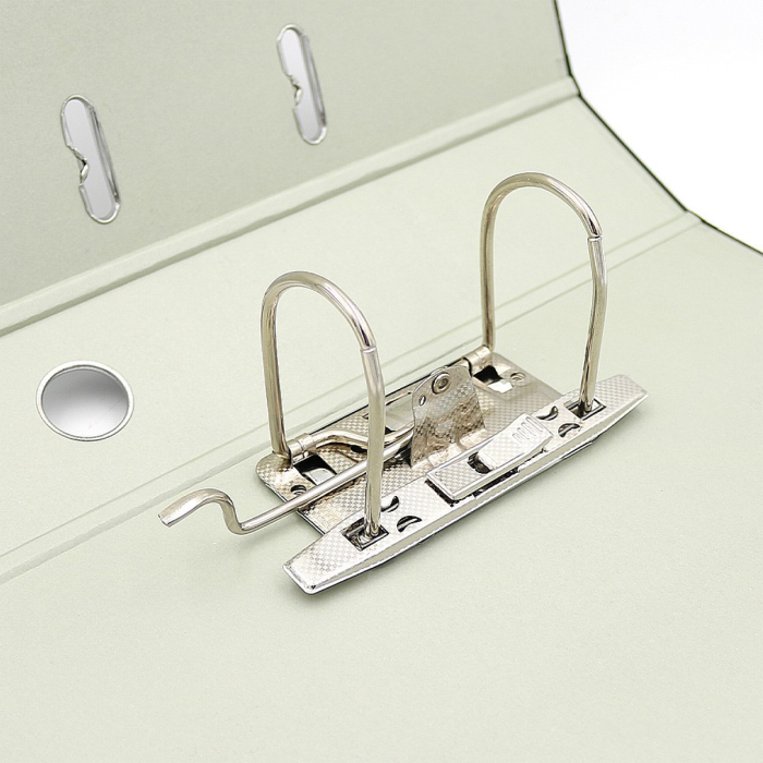 Chrbtový otvor pre lepšiu manipuláciu, chrbát 7,5 cm polepený čiernou plastovou fóliou na spevnenie, plastové chrbtové vrecko na výmenu štítku.