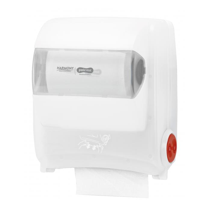 Mechanický systémový zásobník na stenu na miesta s vysokou frekvenciou návštev. Vyrobený z polypropylénu s prímesou Master Bio, ktorá urýchľuje čas biologickej odbúrateľnosti až o 99 %. Vhodný na role AutoCut obj.kód HY1653 00. Vždy dávkuje iba 1 útržok papiera, čo je úspora 30 % oproti bežným skladaným utierkam. Farba biela. Rozmery 40 × 36 × 24 cm.