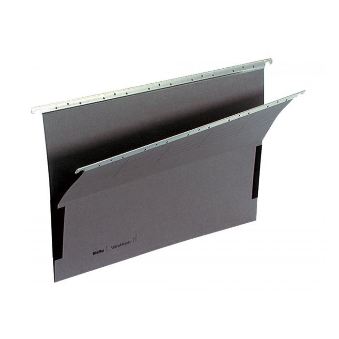 Závesný obal z recyklovaného kartónu gramáže 315 g vystužený nylonom na zakladanie voľných listov do formátu A4. Vybavený bočnicami a kovovými háčikmi na dlhodobé používanie. Predná strana sa dá zložiť na polovicu pre ľahšie prehliadanie vložených dokumentov. Farba sivá.
