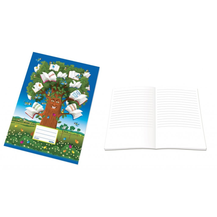 20 listový zošit 423 vo formáte A4 so špeciálnou liniatúrou, ktorú tvoria 2/3 linajky 12 mm pre písanie textu a 1/3 strany je čistá pre kreslenie obrázkov. Zošit je určený predovšetkým pre žiakov na 1.stupni základných škôl na vyučovacie predmety ako: Prvouka, Prírodoveda, Vlastiveda alebo ako Čitateľský denník. Školské zošity sú vyrobené z kvalitného bezdrevného zošitového papiera. Materiál: bezdrevný zošitový papier. Obálka: obojstranne natieraný ofsetový papier s detským motívom.