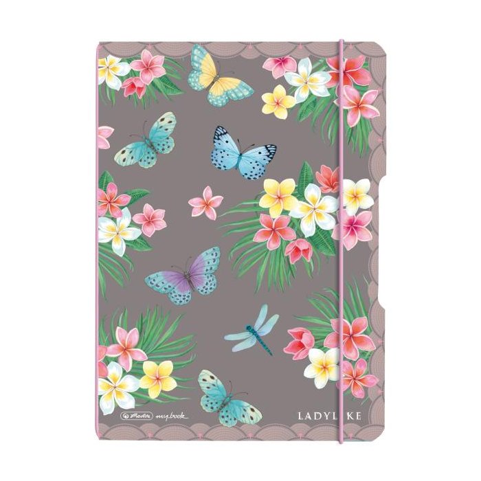 Zošit my.book flex A5, zatváranie na gumičku, zaoblené rohy. Motív Ladylike Motýľ.
