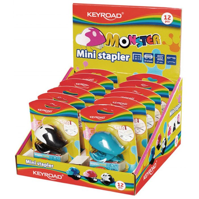 Kovový mechanizmus, plastové telo vyrobené z pevného a odolného plastu. Šitie: uzavreté, vstavaný odstraňovač spiniek, otvor pre krúžok na kľúče. Spinky: 24/6 a 26/6, kapacita: 50 spiniek. Spinky: do 20 listov/80 g papiera. Hĺbka vkladania listu: 30 mm. Spinky 26/6 - 1000 ks zdarma. Balenie: blister, farba: mix farieb.