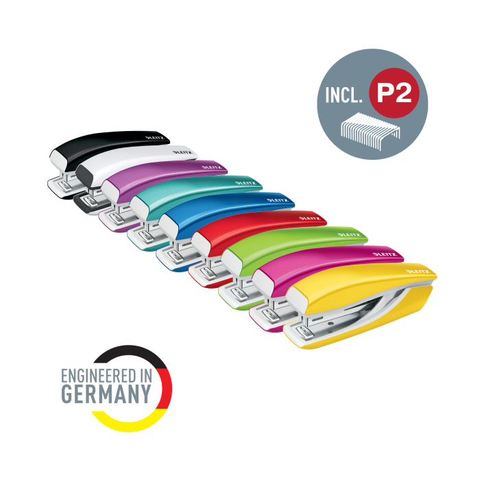 Malá zošívačka v moderných žiarivých farbách ideálna nielen do kancelárie, ale aj domov alebo na cesty. Vždy perfektné zošitie vďaka patentovanej technológii DIT. V kombinácii so spinkami Leitz Power Performance P2 (č. 10) dosiahnete vždy jednoduché a správne zošitie.Kapacita 10 hárkov. Vrecková zošívačka. Patentovaná technológia DIT na spoľahlivé zošívanie. Balenie v škatuľke, vrátane spiniek. Otvorením ramena o 180° je možné použiť nástenkové zošívanie (takrovanie). Farba zelená.
